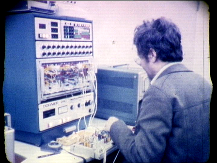 _ Spiral chaos, screw chaos, butterfly chaos and hyperchaos (all at different simulation speeds). Sound starts belatedly. Slight crossing of the eyes enables stereo impression from twin representations. Analog computer plus storage-type oscilloscope. [See the movie->https://www.youtube.com/watch?v=Tmmdg2P1RIM]